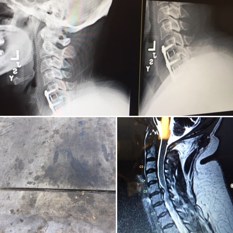 When I fell, my arm jammed into my neck, propelling three discs straight into my spinal cord. I had felt the flutter — but the pain showed up in my legs. So no one ever looked at my neck.
